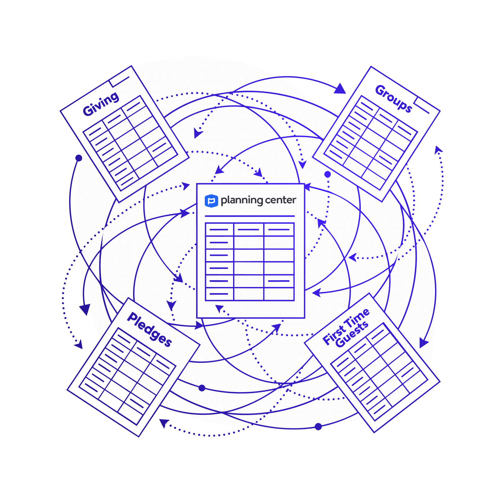 Exports split across multiple files. Required fields missing. Donors, notes, and pledges scattered across spreadsheets that don't talk to each other. Planning Center's import tools weren't built to handle that complexity.